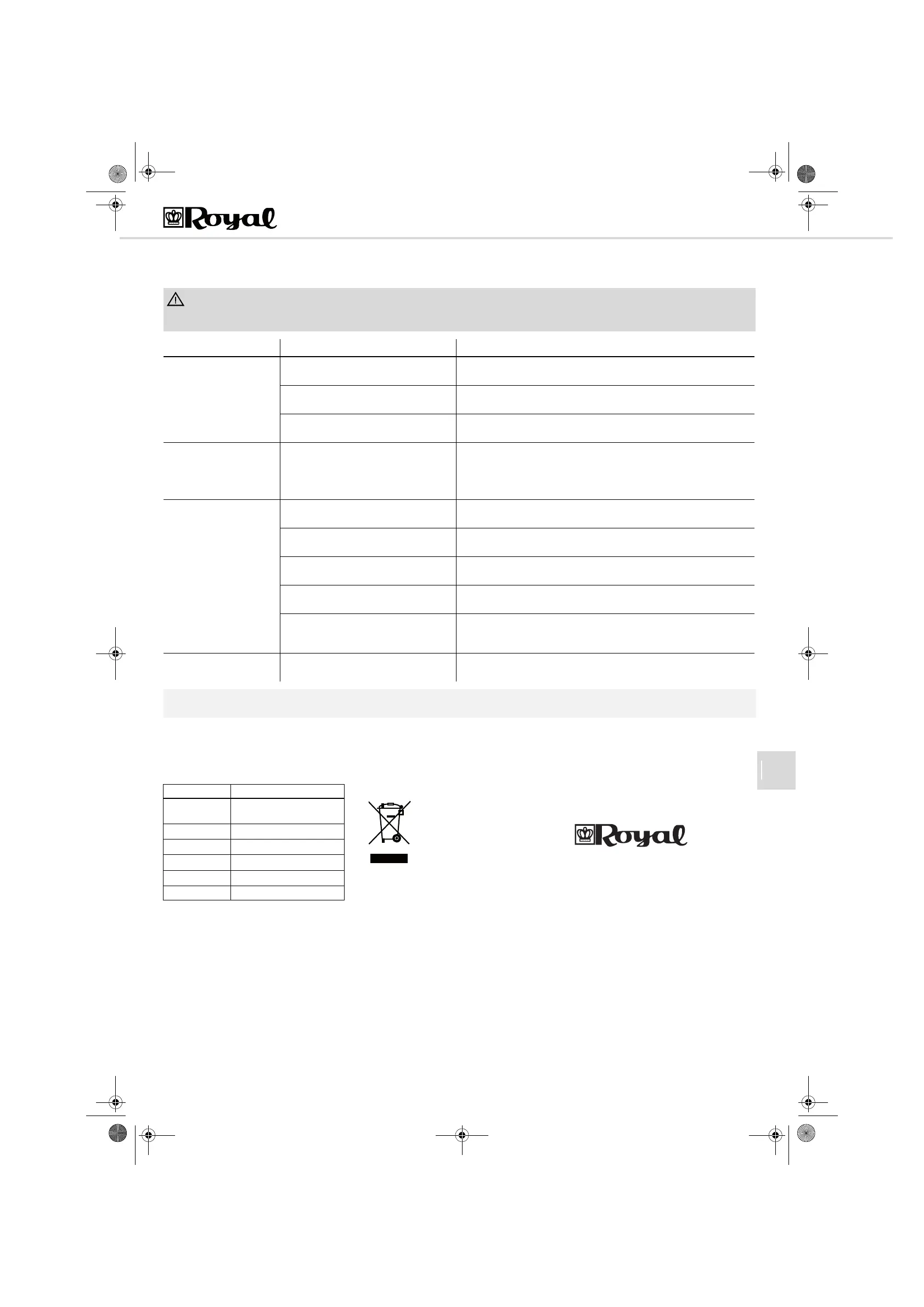 Se non si è riusciti a eliminare il problema con l'ausilio della presente tabella, contattare il servizio assistenza Royal (Pagina 40, "International Service").