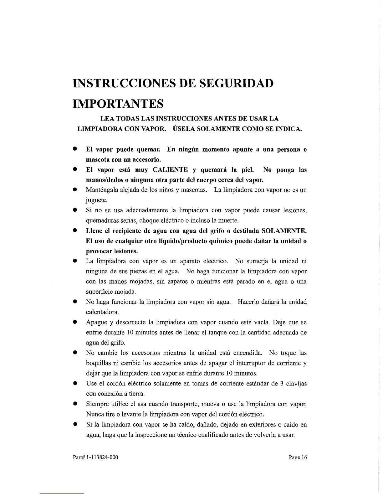 No haga funcionar la limpiadora con vapor sin agua. Hacerlo dafiara la unidad