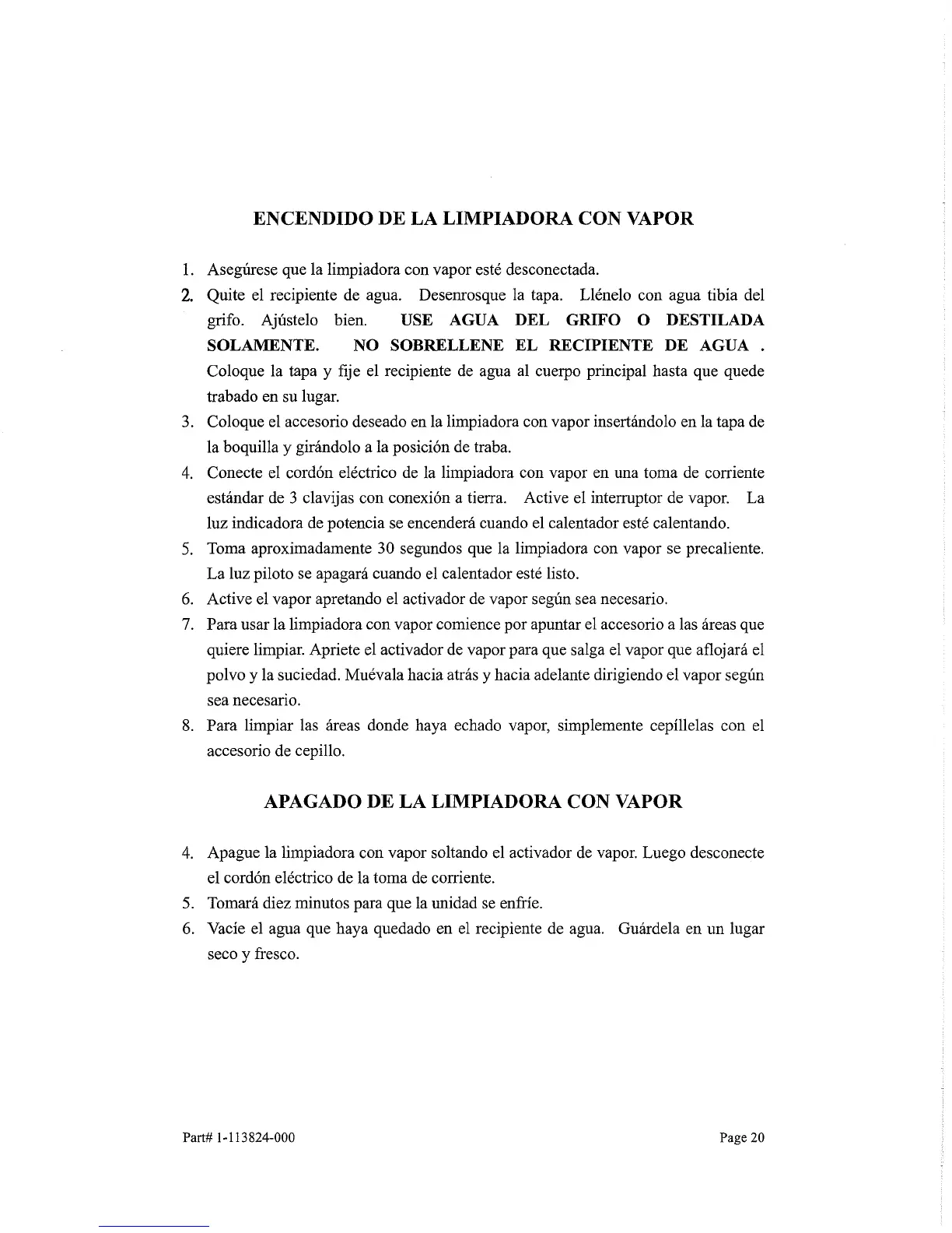 APAGADO DE LA LIMPIADORA CON VAPOR