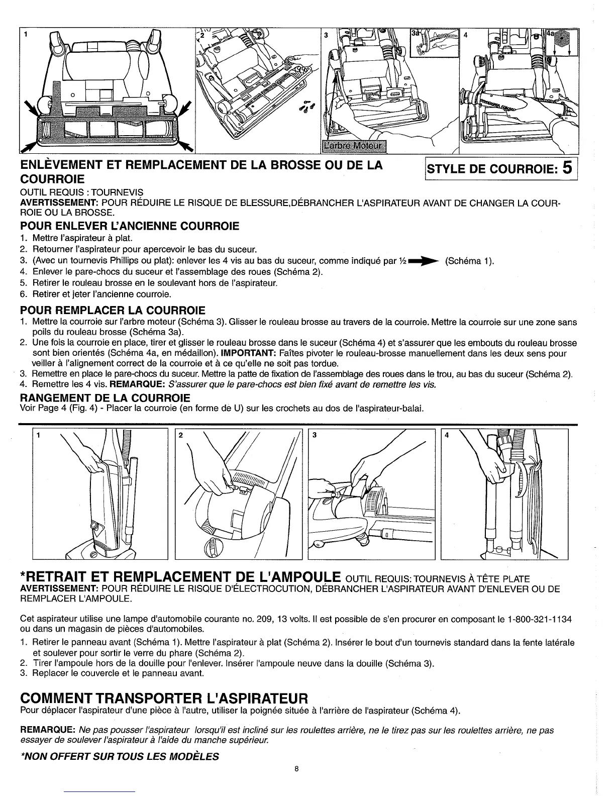 Cet aspirateur utilise une lampe d'automobile courante no. 209, 13 volts. II est possible de s'en procurer en composant le 1-800-321-1 134