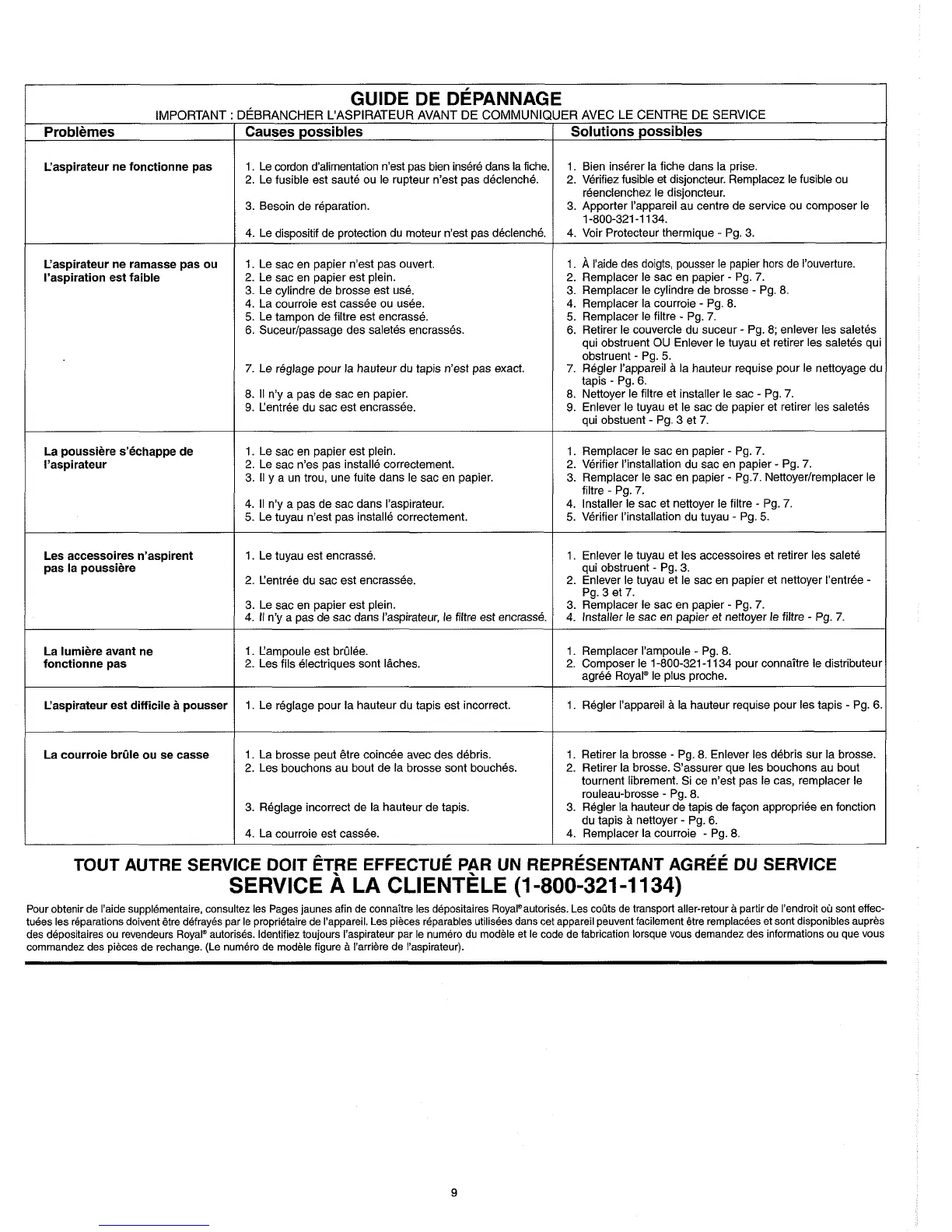 des depositaires ou revendeurs Royal" autorises. ldentifiez toujours I'aspirateur par le numero du modele et le code de fabrication lorsque vous dernandez des informations ou que vous