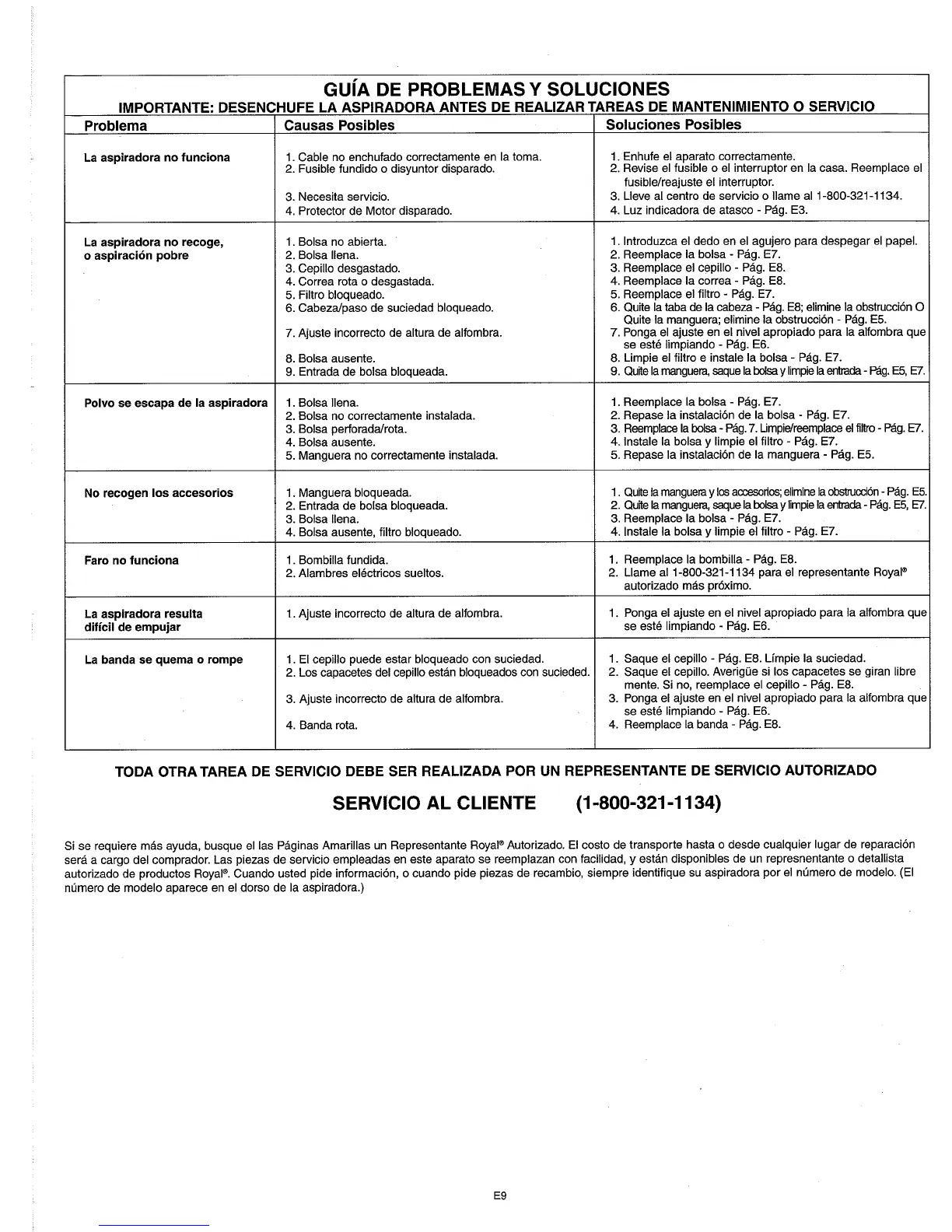 Si se requiere mas ayuda, busque el las Paginas Amarillas un Representante Royal" Autorizado. El costo de transporte hasta o desde cualquier lugar de reparacion