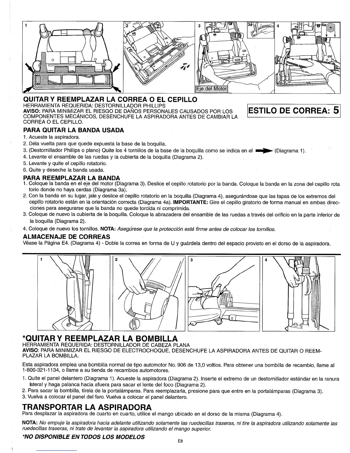 Esta aspiradora emplea una bombilla normal de tipo automotor No. 906 de 13,O voltios. Para obtener una bombilla de recambio, llame al