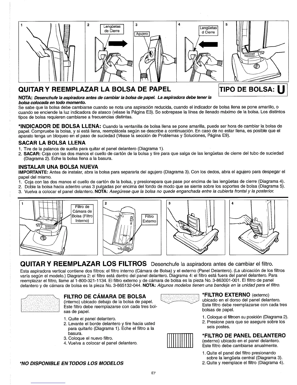 cuando se enciende la luz indicadora de atasco (vease la Pagina E3). So sobrepase la linea de llenado maximo de la bolsa. Los distintos