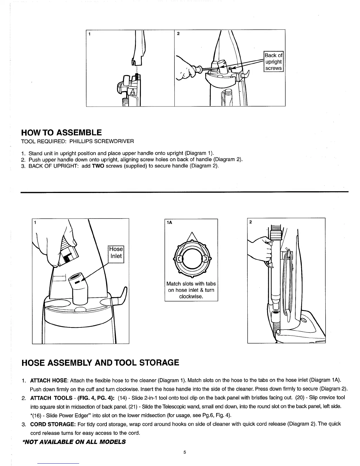 1. ATTACH HOSE: Attach the flexible hose to the cleaner (Diagram 1). Match slots on the hose to the tabs on the hose inlet (Diagram IA).