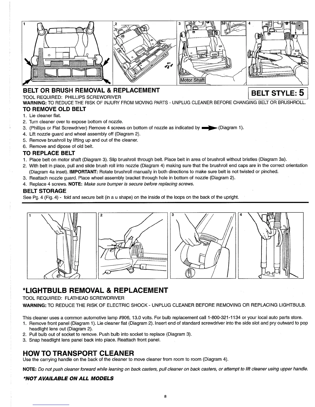 UNPLUG CLEANER BEFORE CHANGING BELT OR BRUSHROLL.