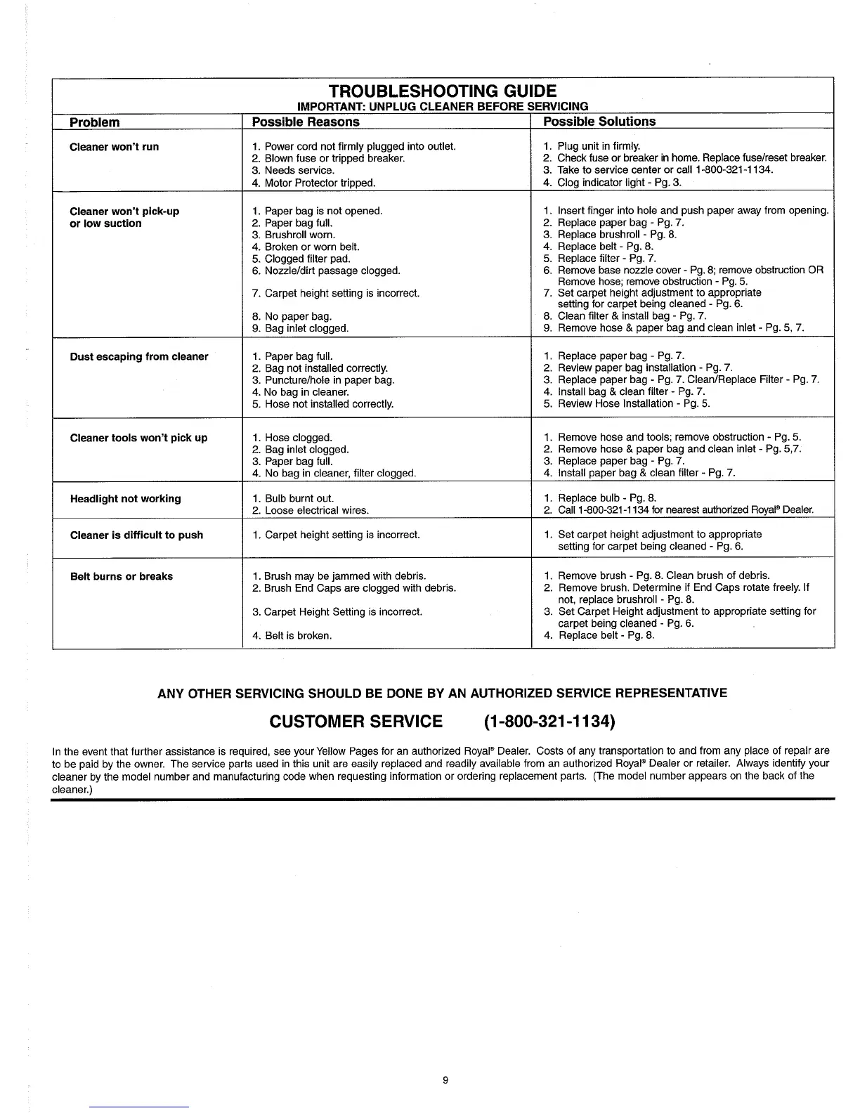 to be paid by the owner. The service parts used in this unit are easily replaced and readily available from an authorized Royal" Dealer or retailer. Always identify your