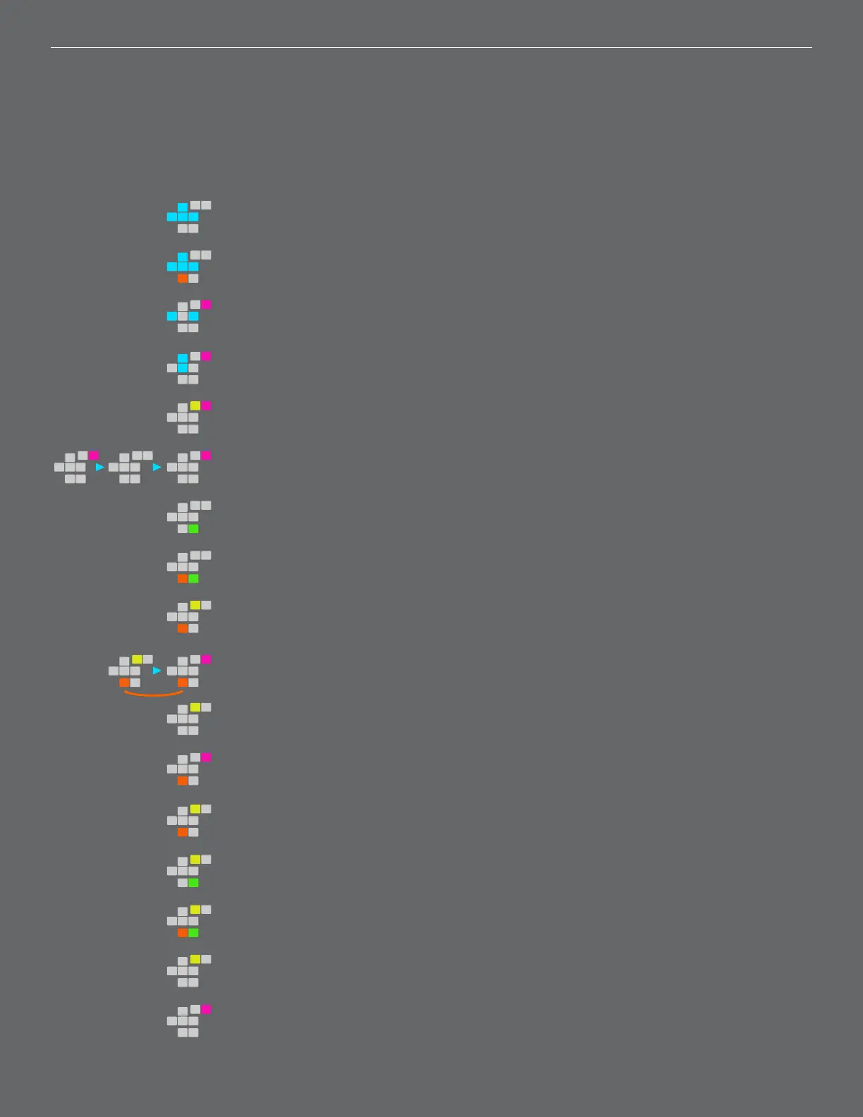 START: On Song screen- play song. On Phrase, chain, or instrument play part
