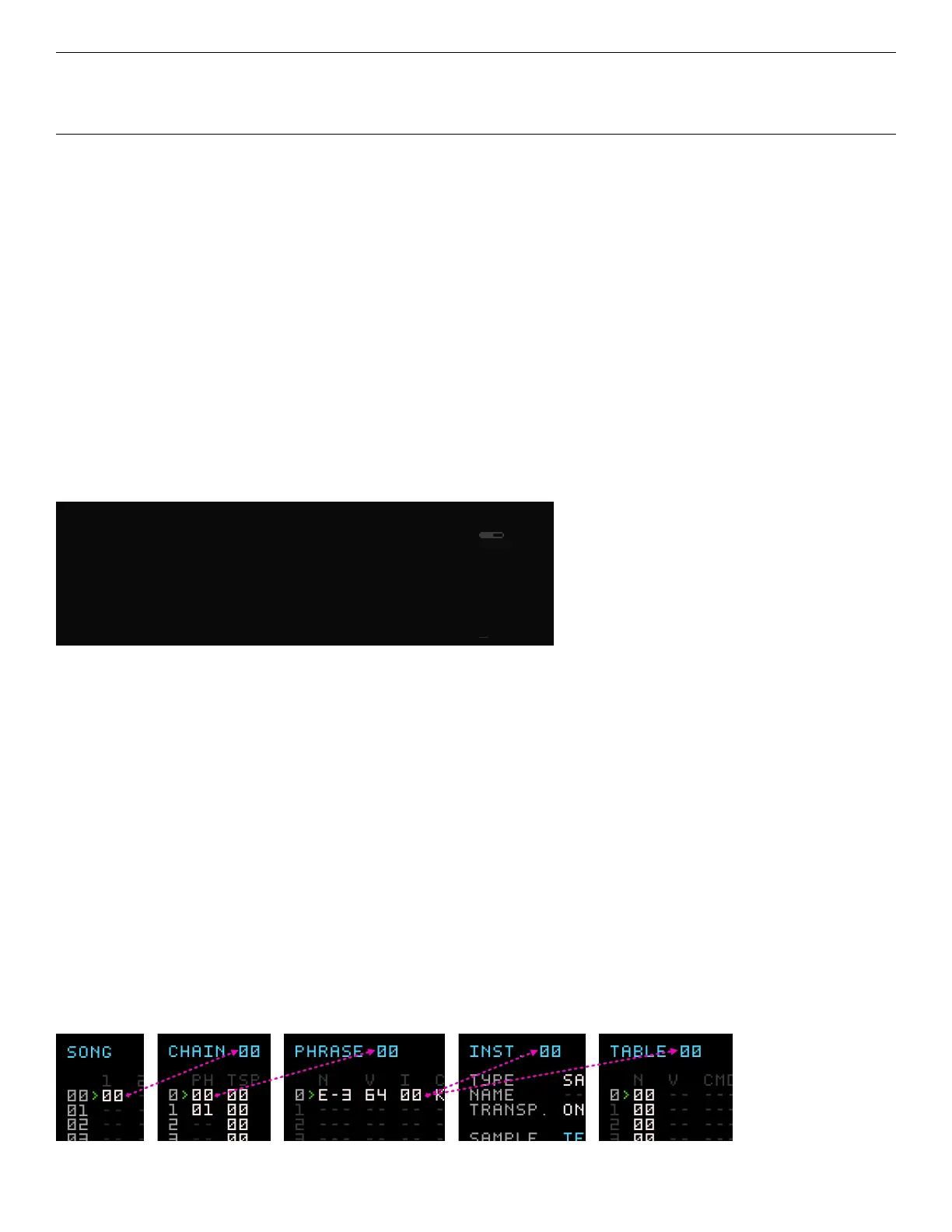 vertically. Chains are groups of phrases, and phrases contain the notes, velocities, in-