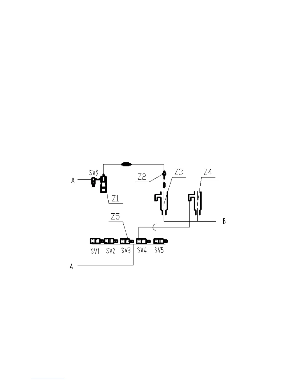 ——stirring rob rinsing bath;Z5——five-valve plate unit;A——water tank;B——waste outlet