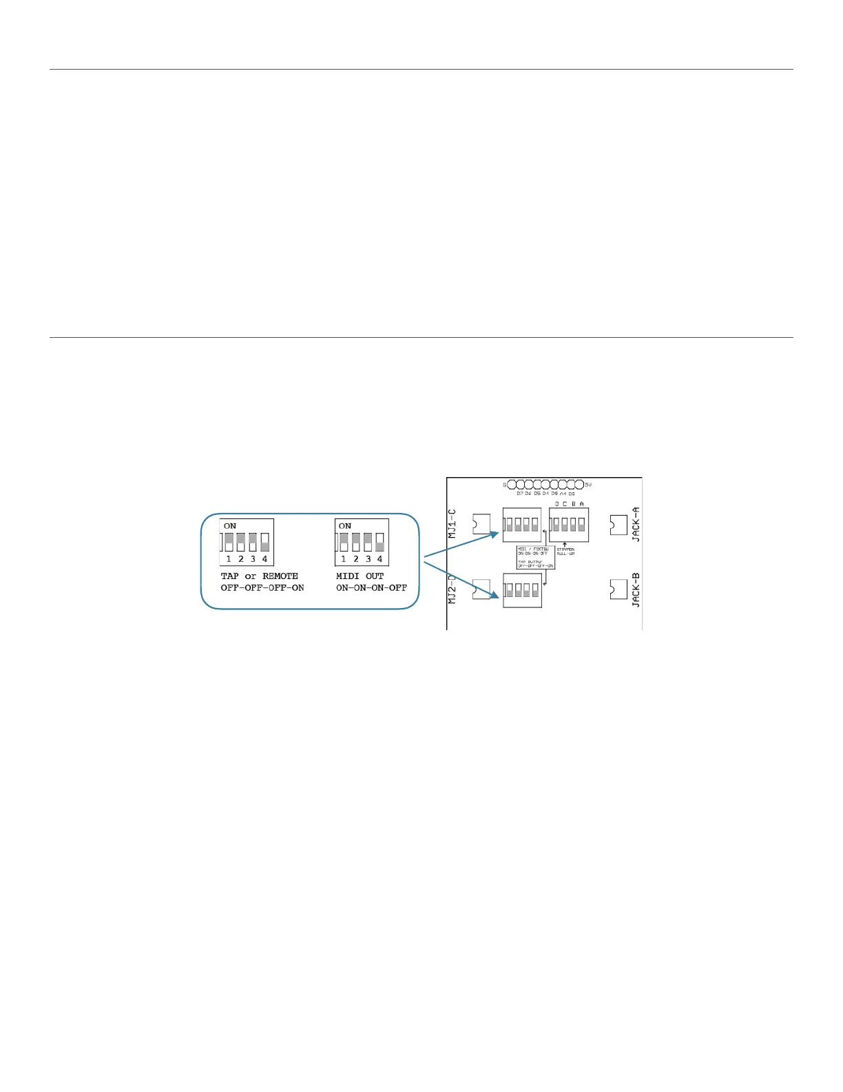To use the MultiJack for tap tempo, remote switching, set the switches to OFF-OFF-OFF-ON.