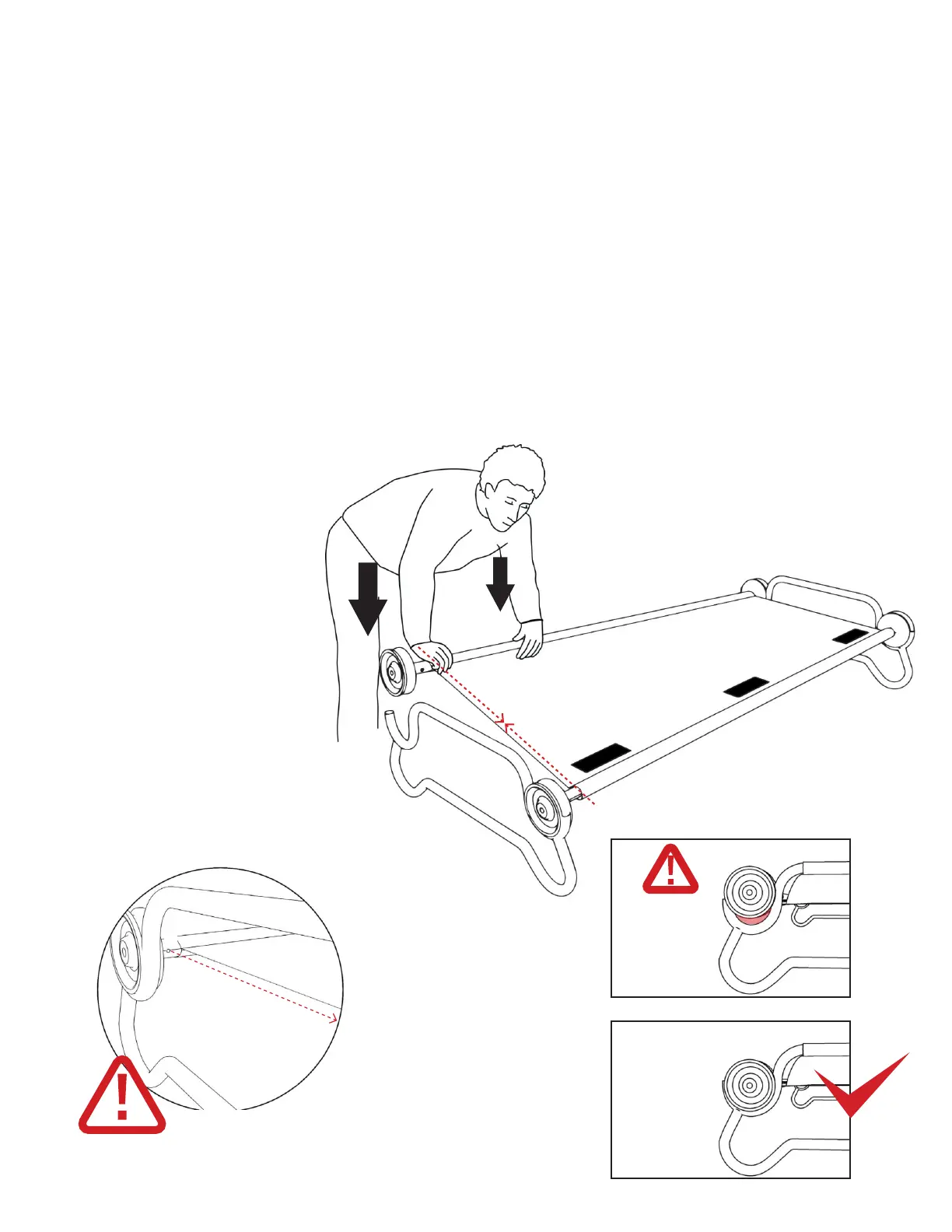 4.1. Make sure pin (A) is visible, is not covered by the sleeping mat and is facing inwards. Check all four bed