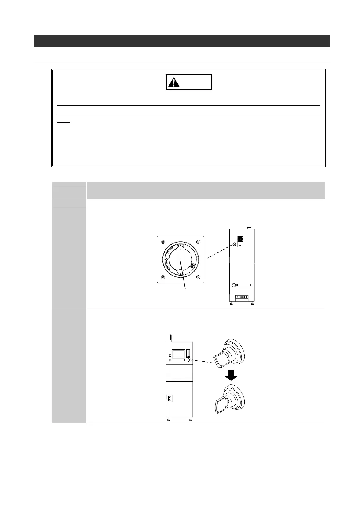 floor. Also, turn OFF the facility power source and lock it out with a padlock or the