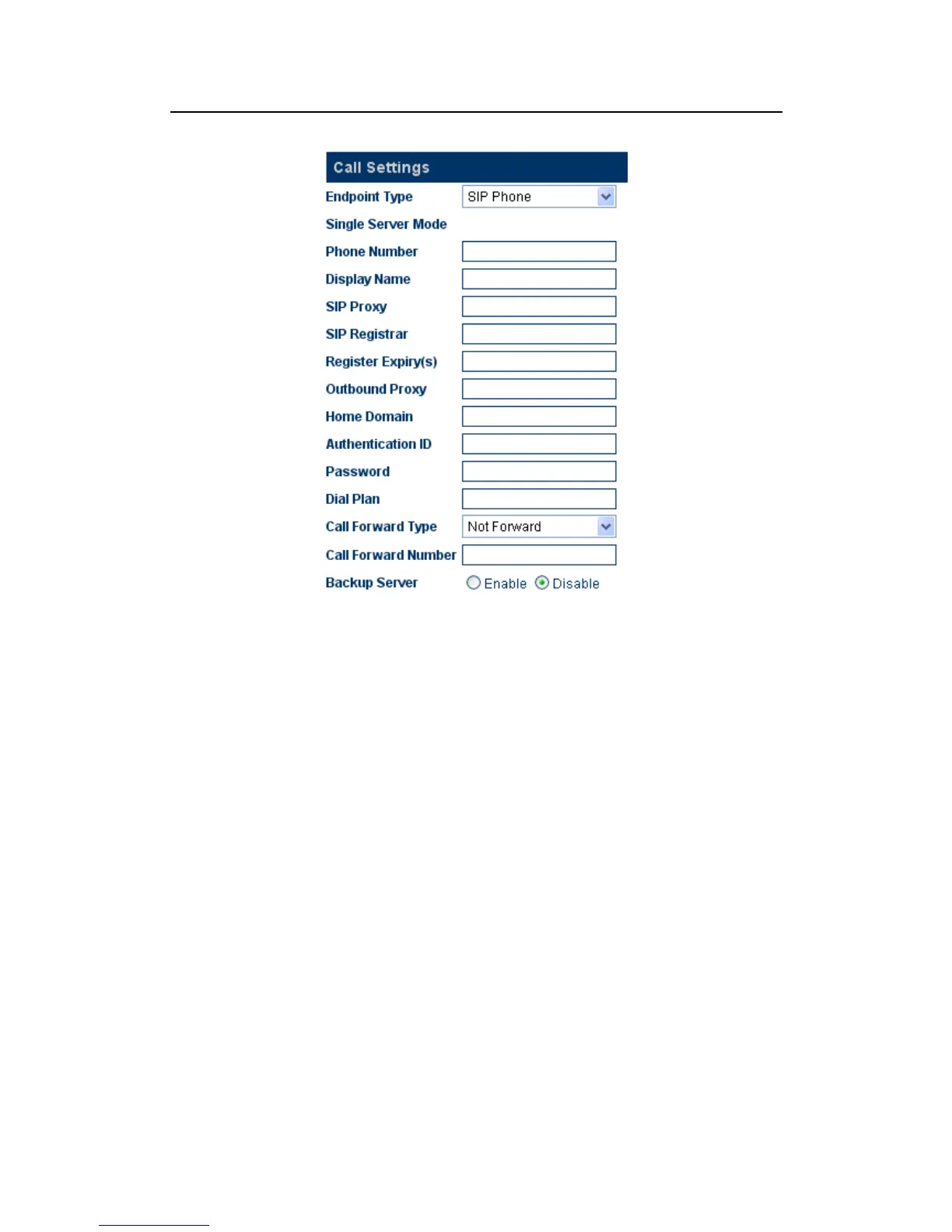 Enter the SIP proxy IP address or domain name. If the registration port isn’t 5060,