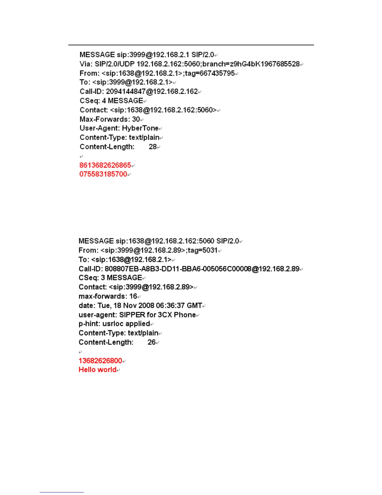 The GoIP will send a SMS to GSM number 13682626800, the SMS content is “Hello