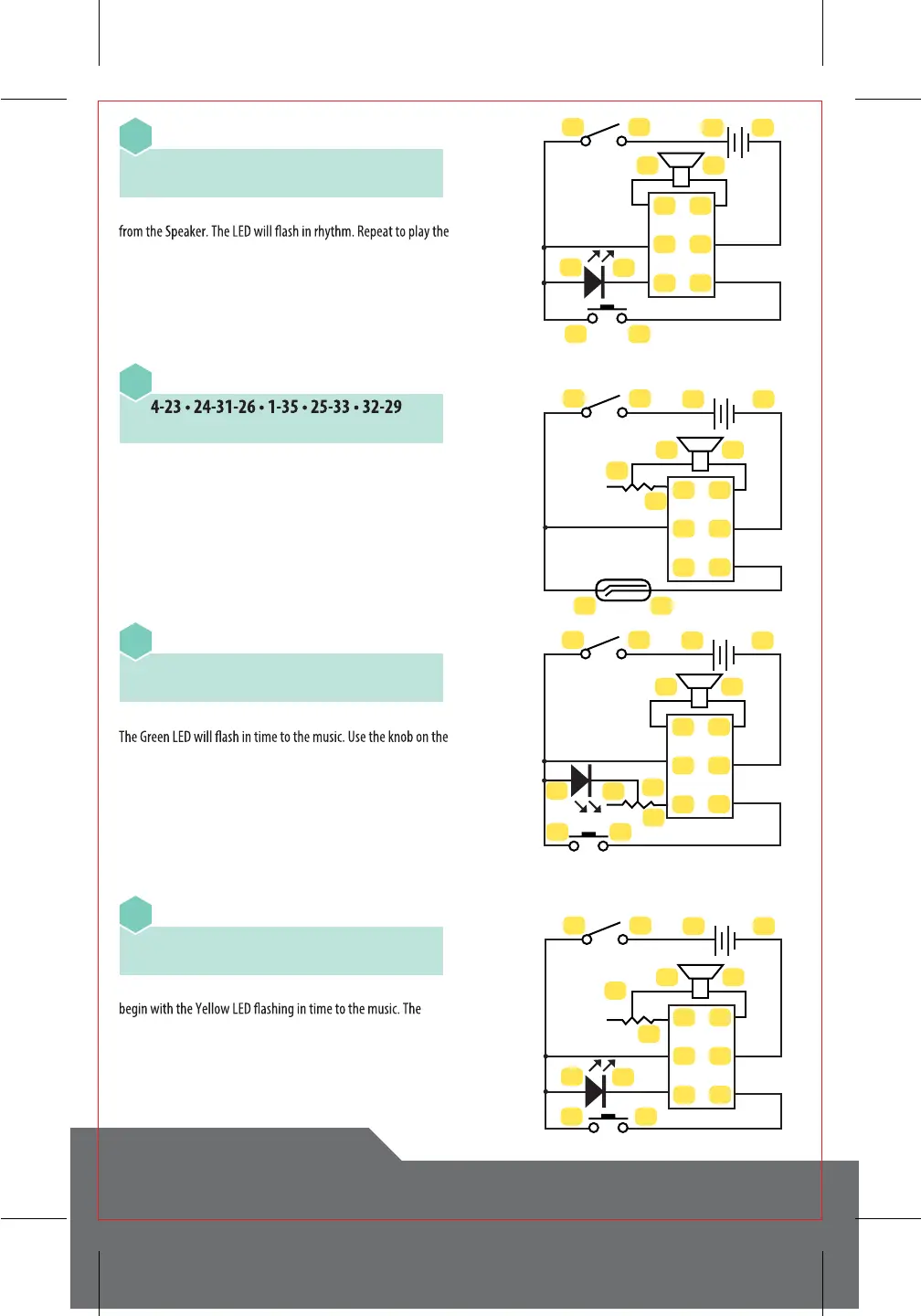 Slide on the Main Switch. Press the Push Switch to start the music.