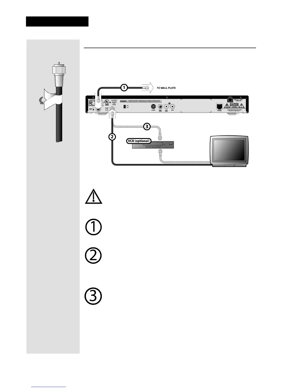 IGNAL INPUT - Connect a coaxial cable between the wallplate