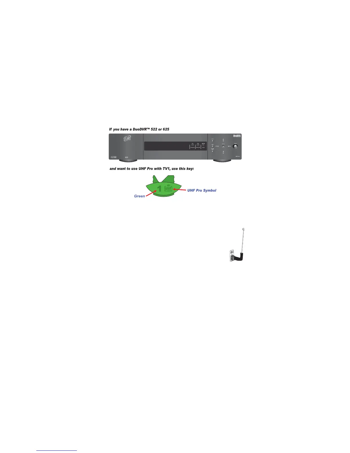 UHF Pro key to control the TV1 side of your DuoDVR 522 or 625