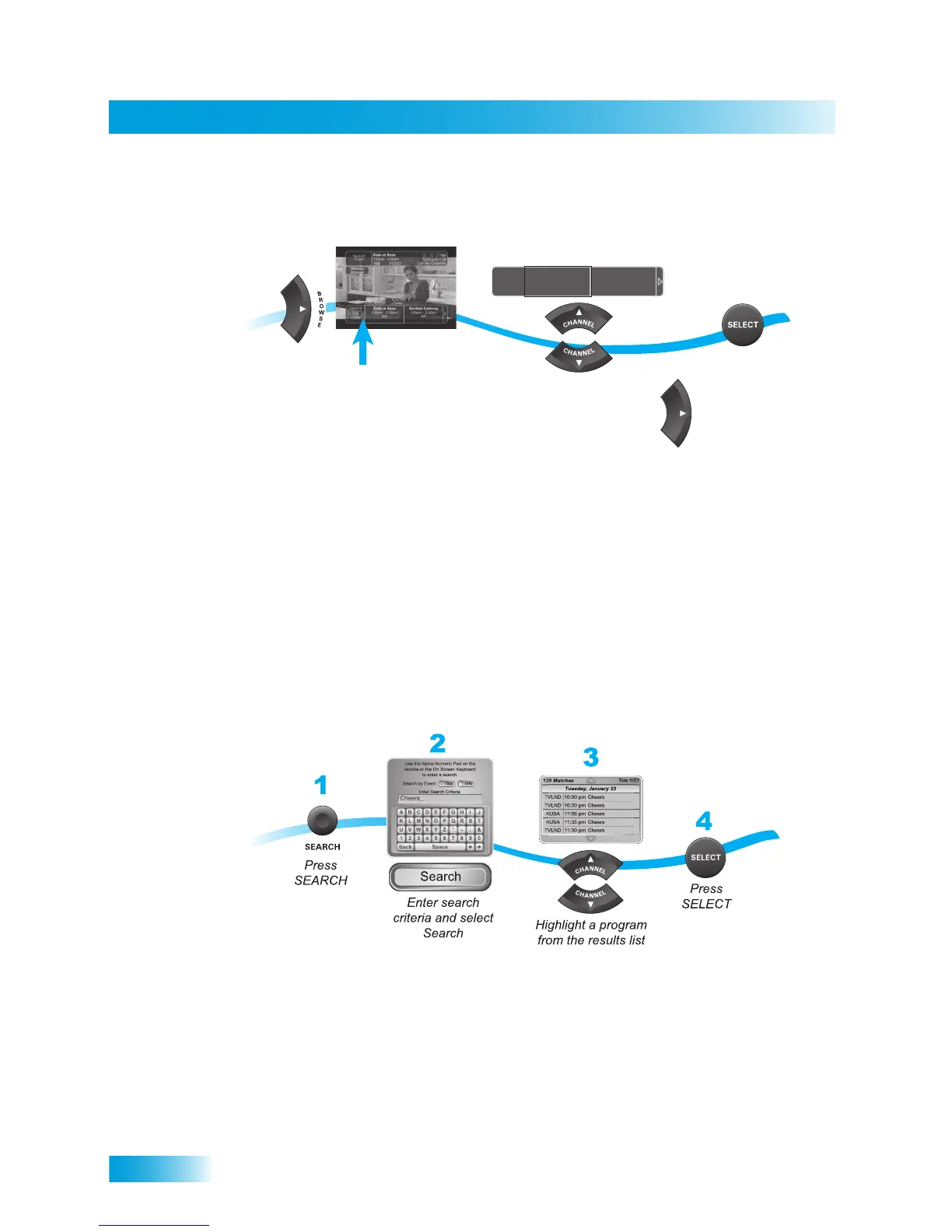 You can find programs to watch by using the Search feature of the receiver. This feature