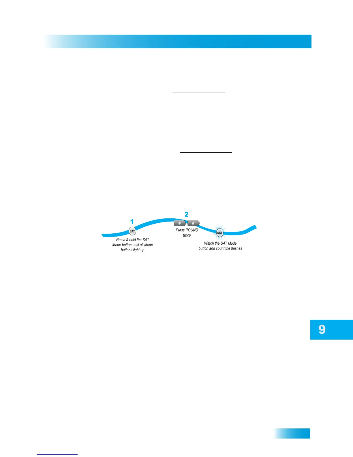 2 Press POUND (#) twice. The SAT mode button flashes the same number of times as the