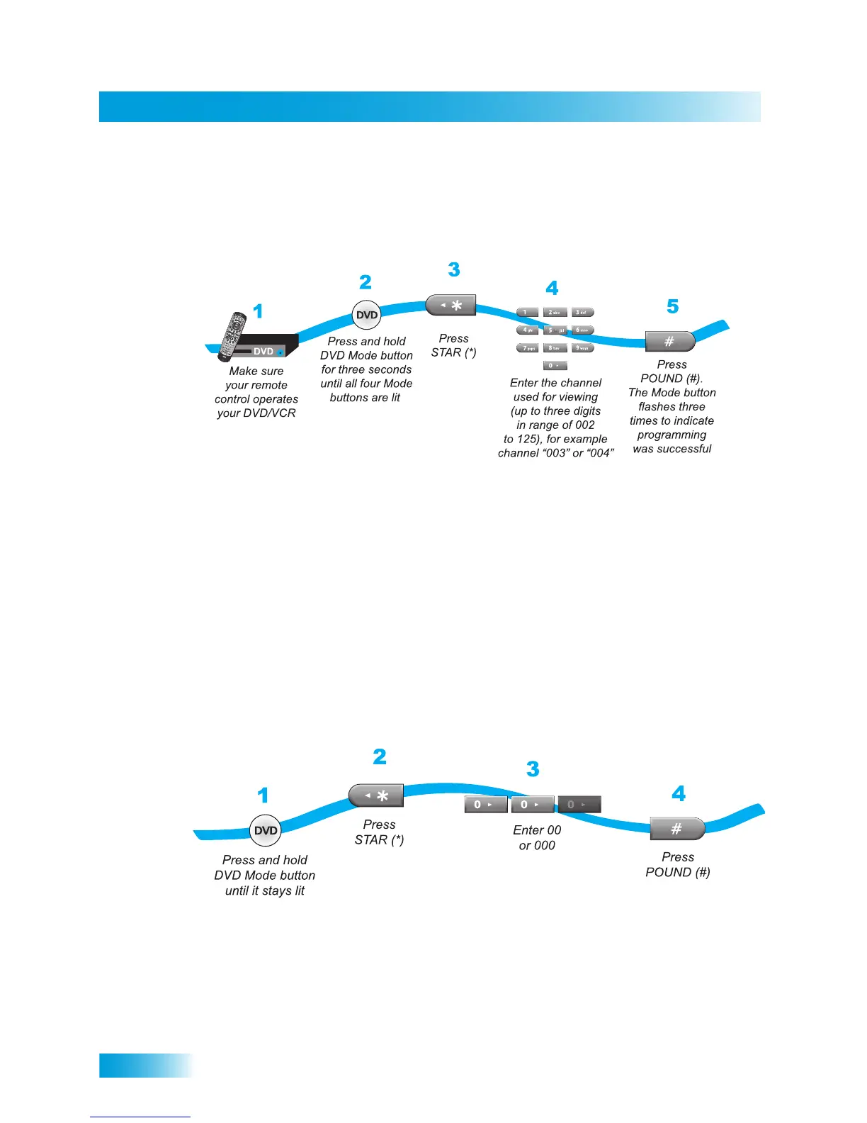 2 Press and hold DVD for three seconds until all four Mode buttons are lit.