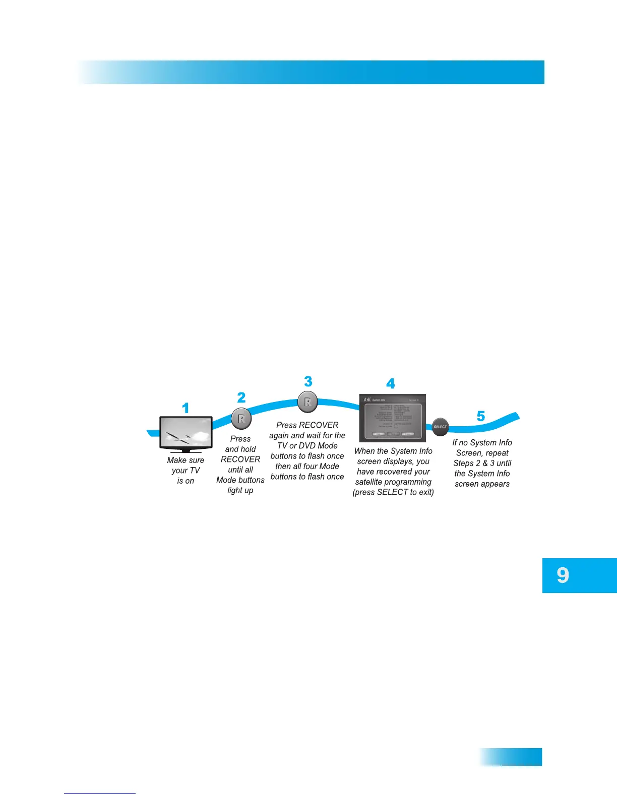 4 When the System Info screen displays, your satellite programming is recovered. Press