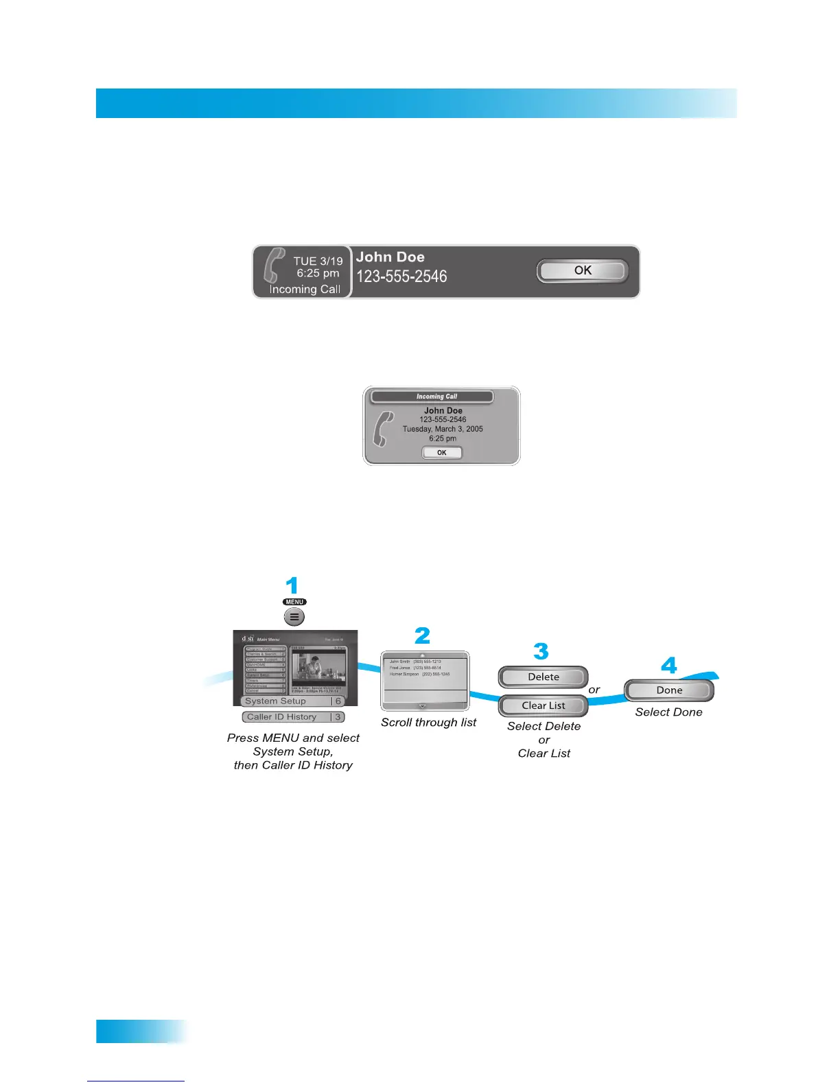 Your receiver also stores a history of the incoming calls. Use the following steps to view