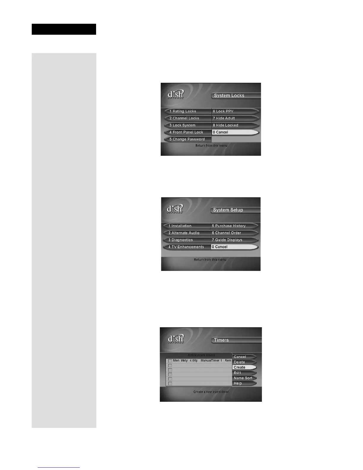 The Timers Menu allows you to set up the receiver to tune in a future “event,”