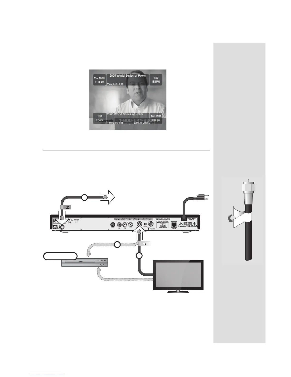 satellite TV receiver, dish, TV, and DVD/VCR. If you’d like to connect