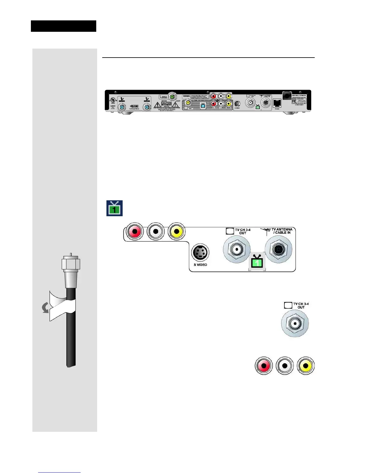TV1 Connections - Use these connections with the nearby TV.