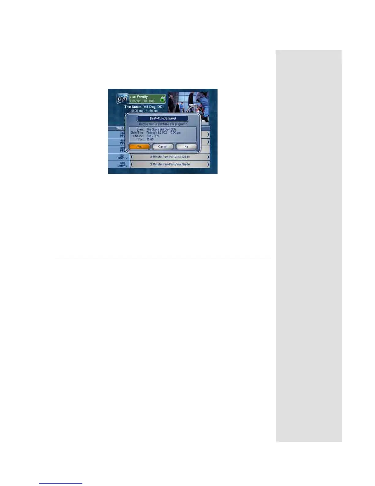 1. Highlight the desired pay per view program in the Program Guide and