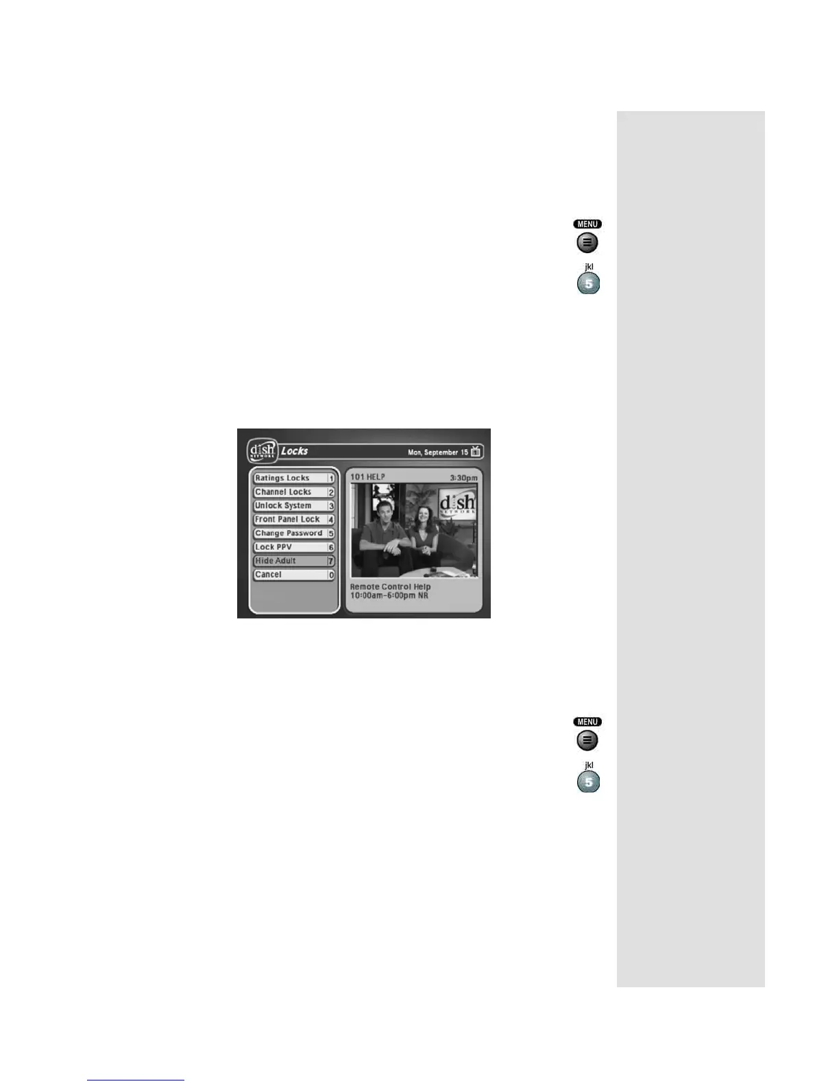 If the receiver is locked, enter the password using the NUMBER PAD