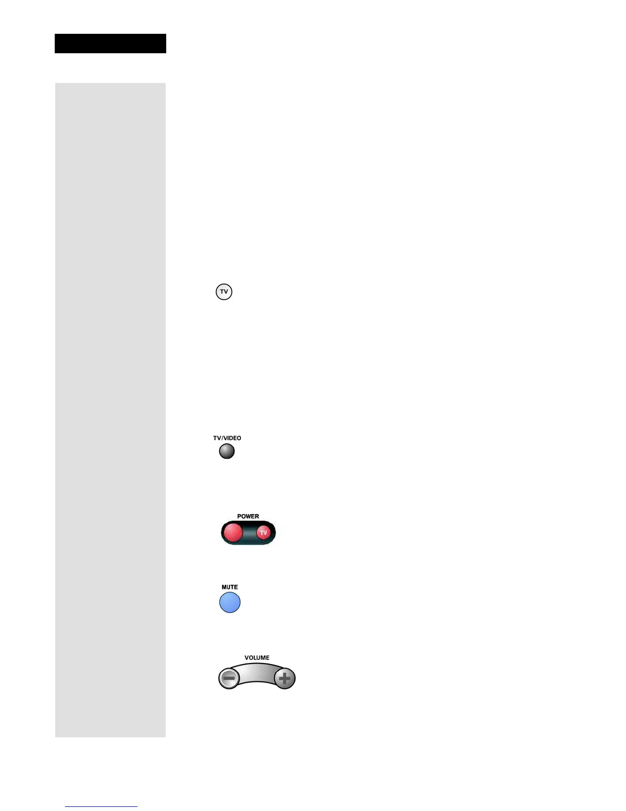 Press this button to raise (+) or lower (-) the TV sound volume.