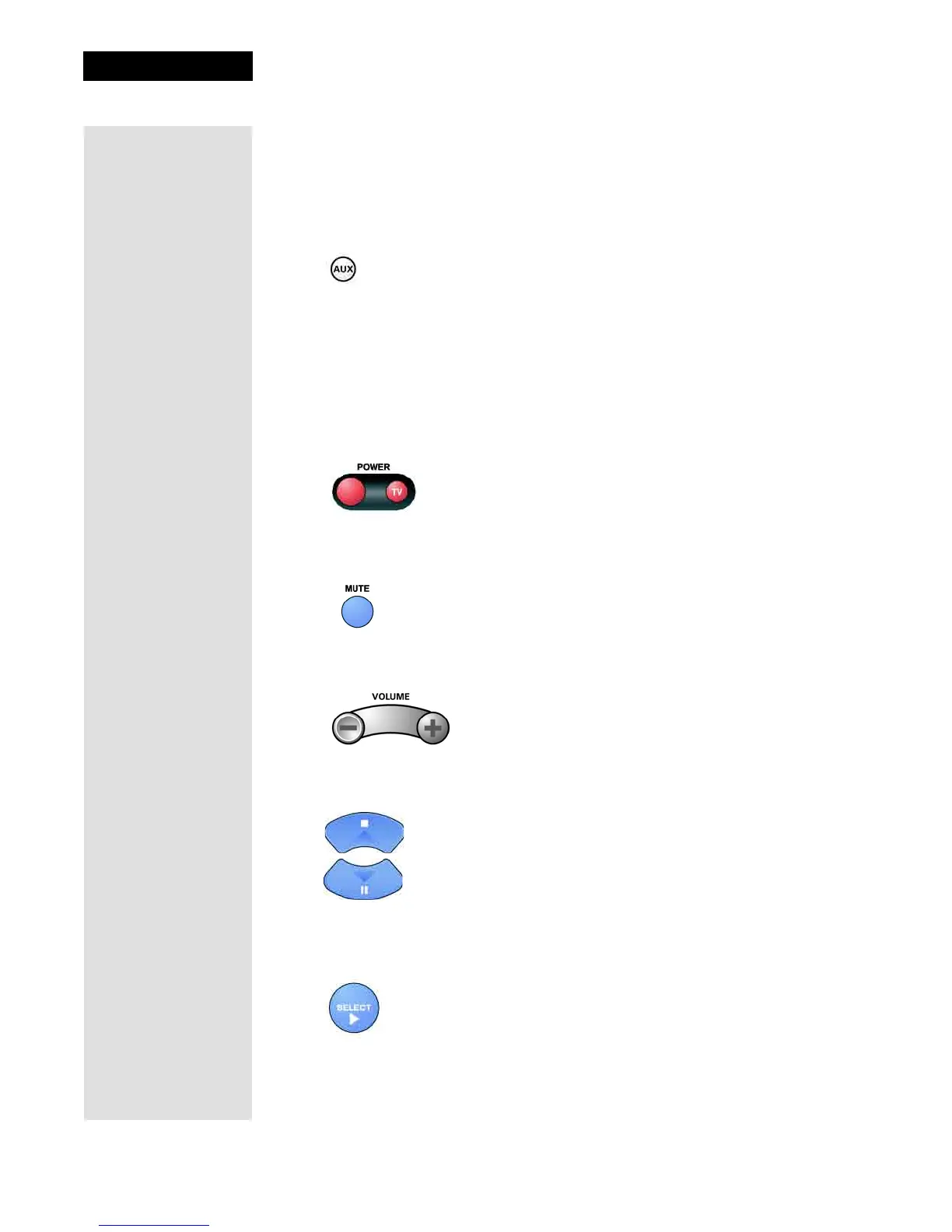 remote in AUX mode to use the buttons described here. Refer to TV Mode