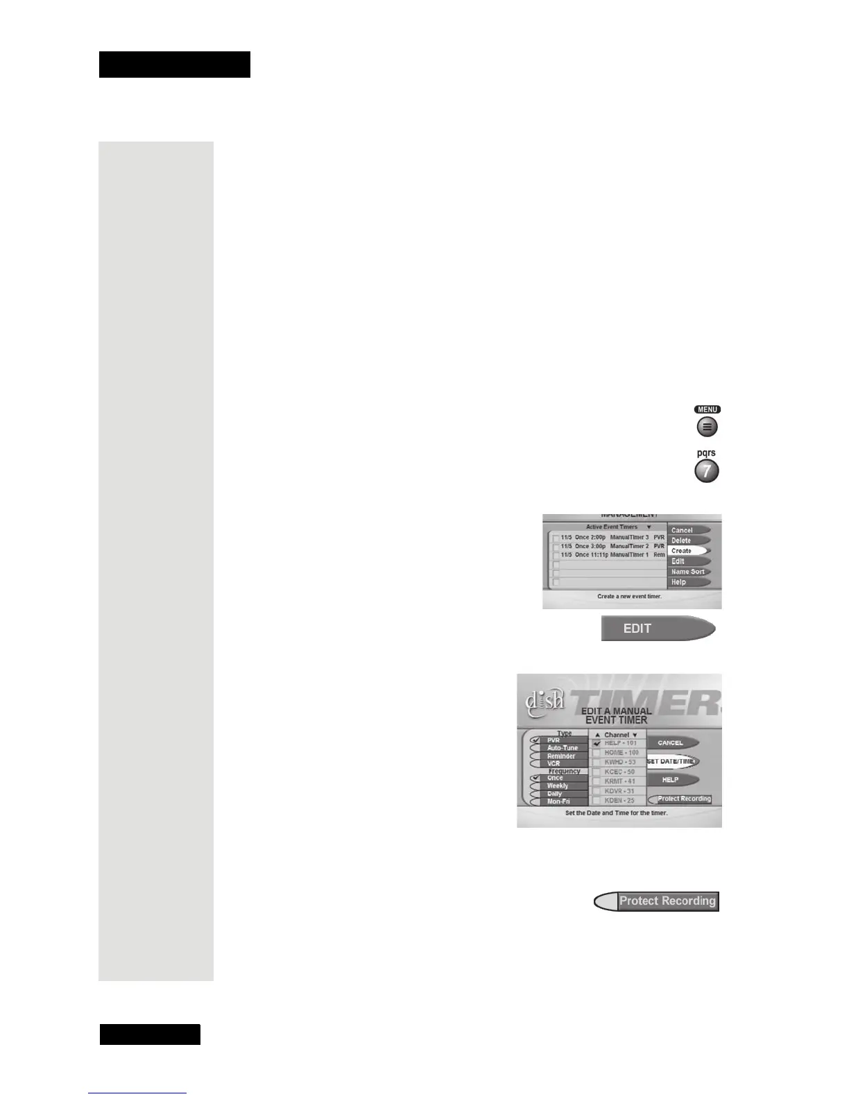 Note: When you protect a recorded program, the receiver will ask you