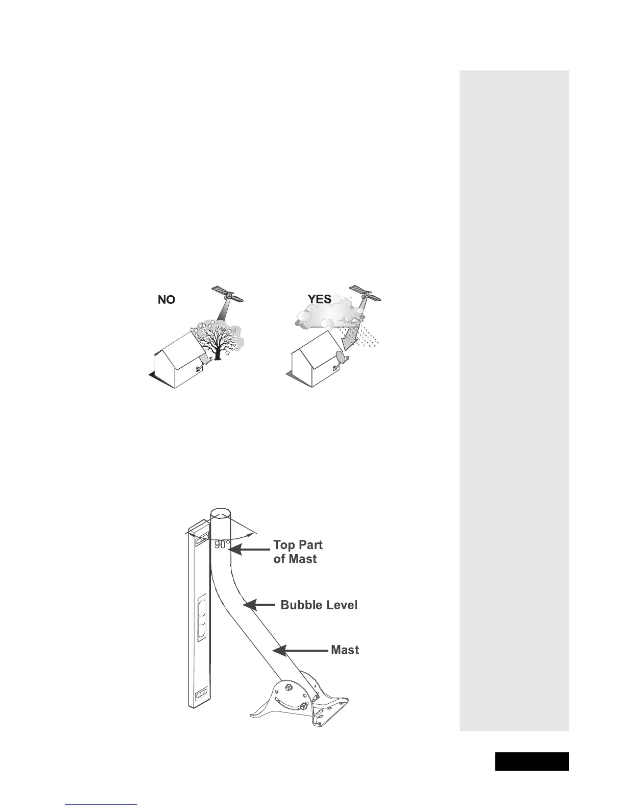 2. Mount the mast to a solid surface so that the dish antenna cannot move or