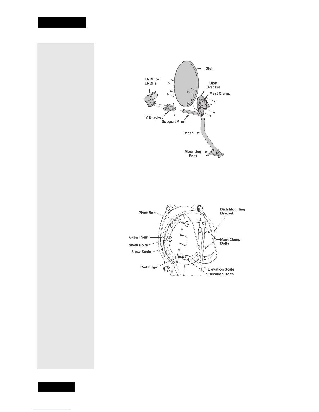 6. Set the elevation by tilting the dish mounting bracket to align the red