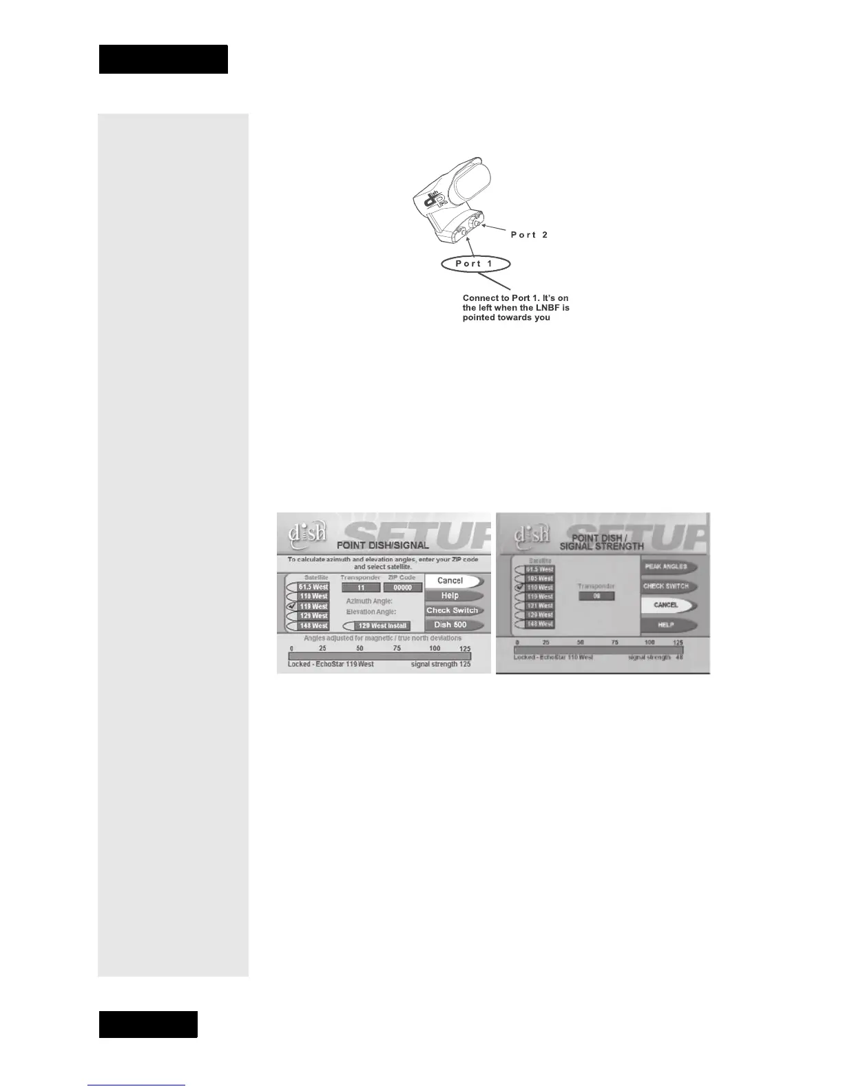, select System Setup, then Installation, then Point Dish/
