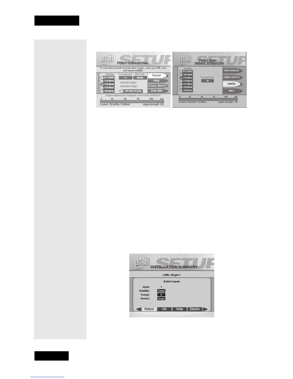Point Dish/Signal screen looks like