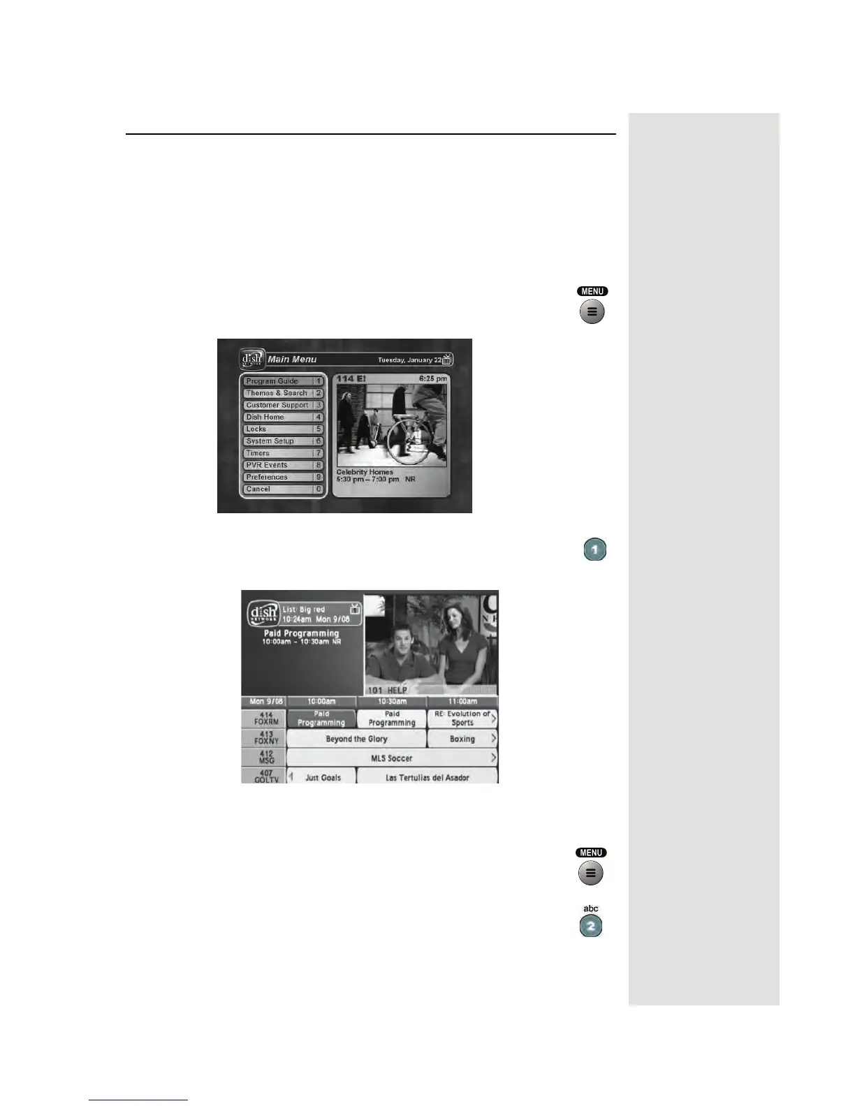 Main Menu. This opens the Program Guide on the TV screen.