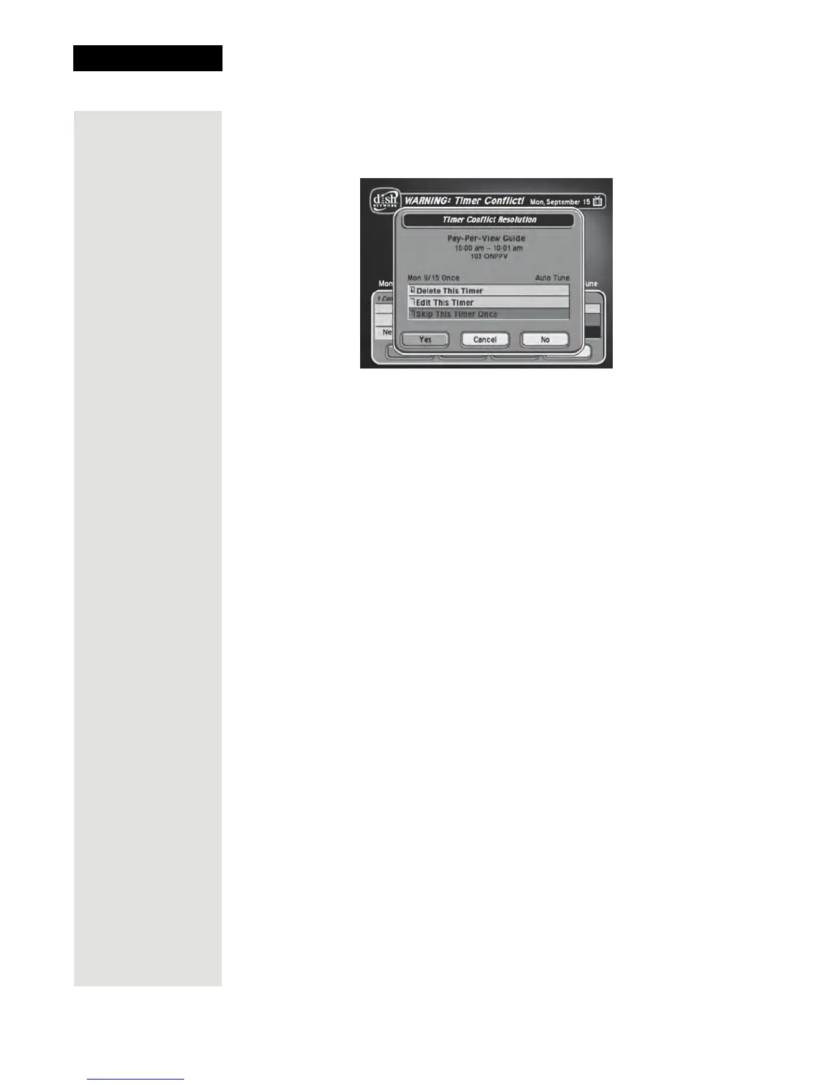 When the Timer Conflict! screen displays, resolve the conflict by doing the
