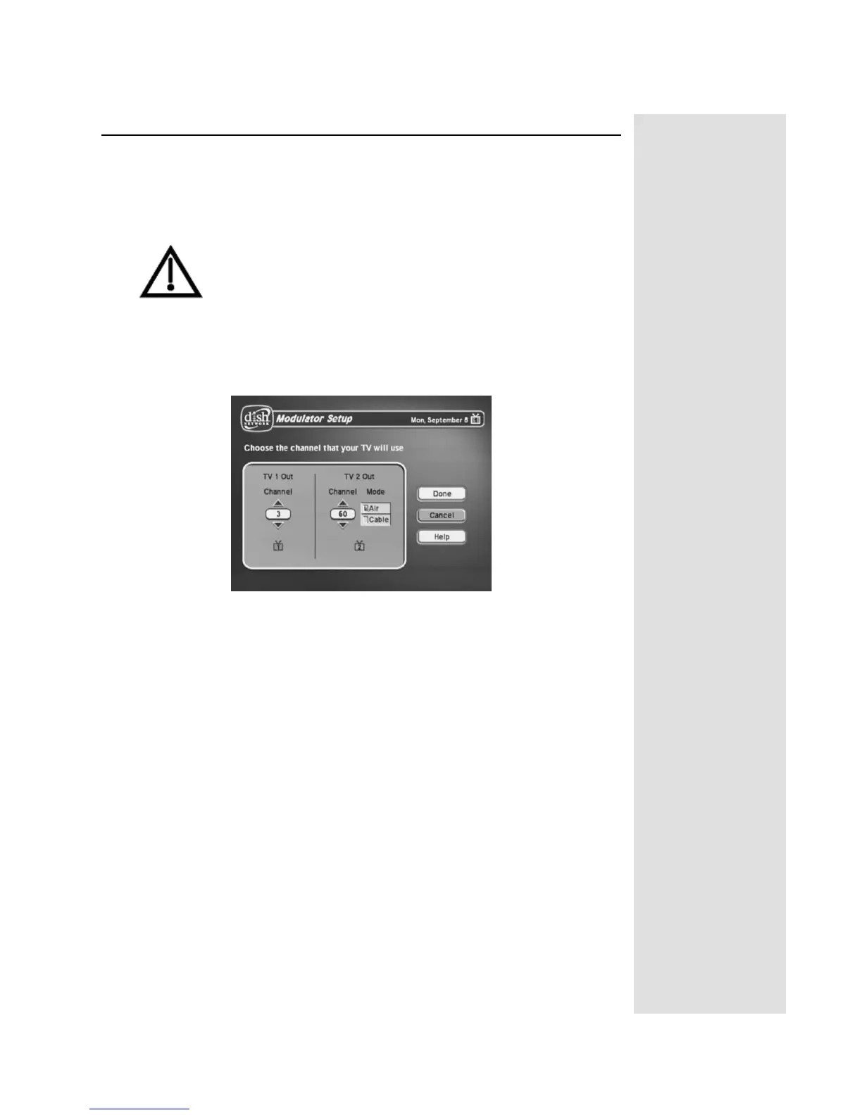 6. Use the UP and DOWN ARROW buttons to change the modulator channel