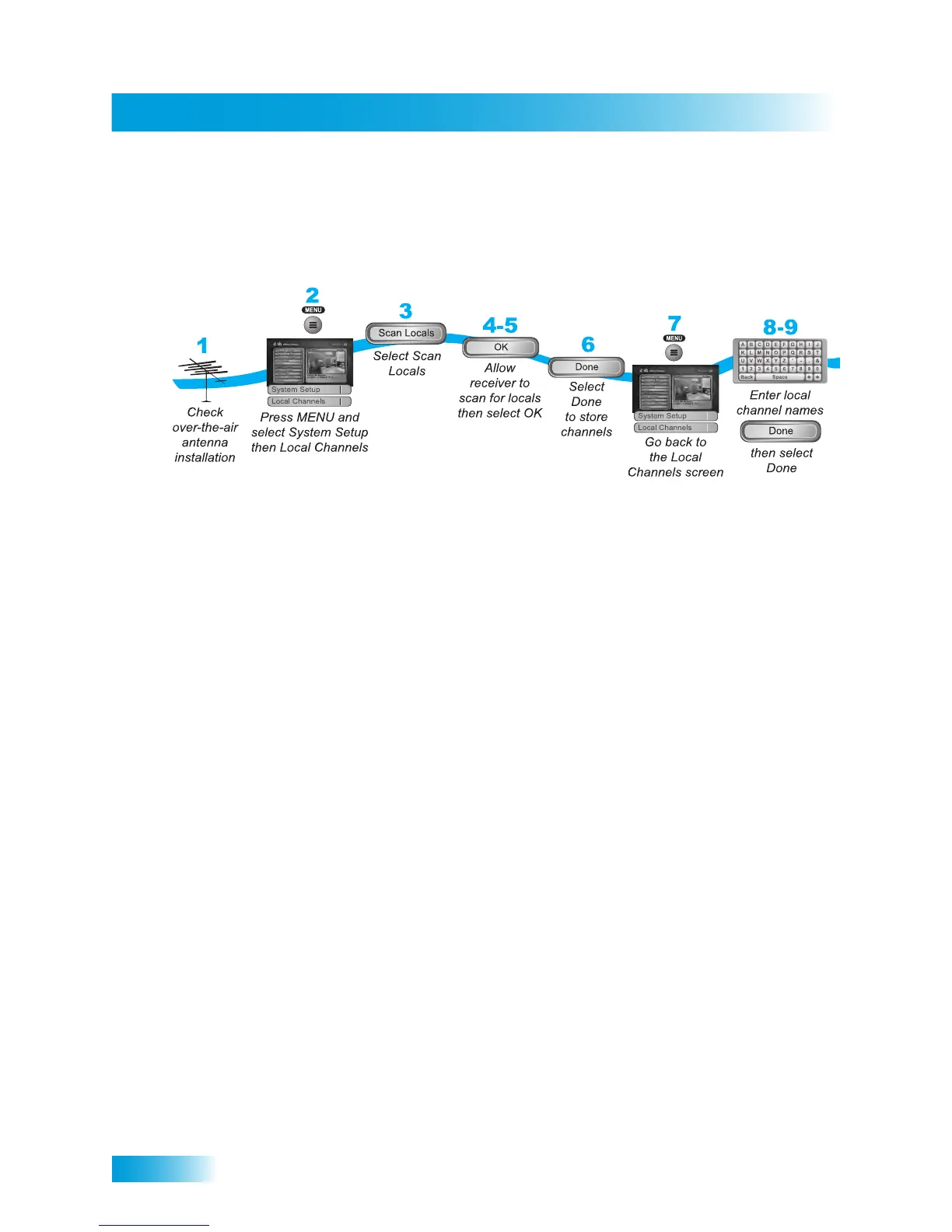 2 Press the MENU button, select System Setup, and then Local Channels. If this is the