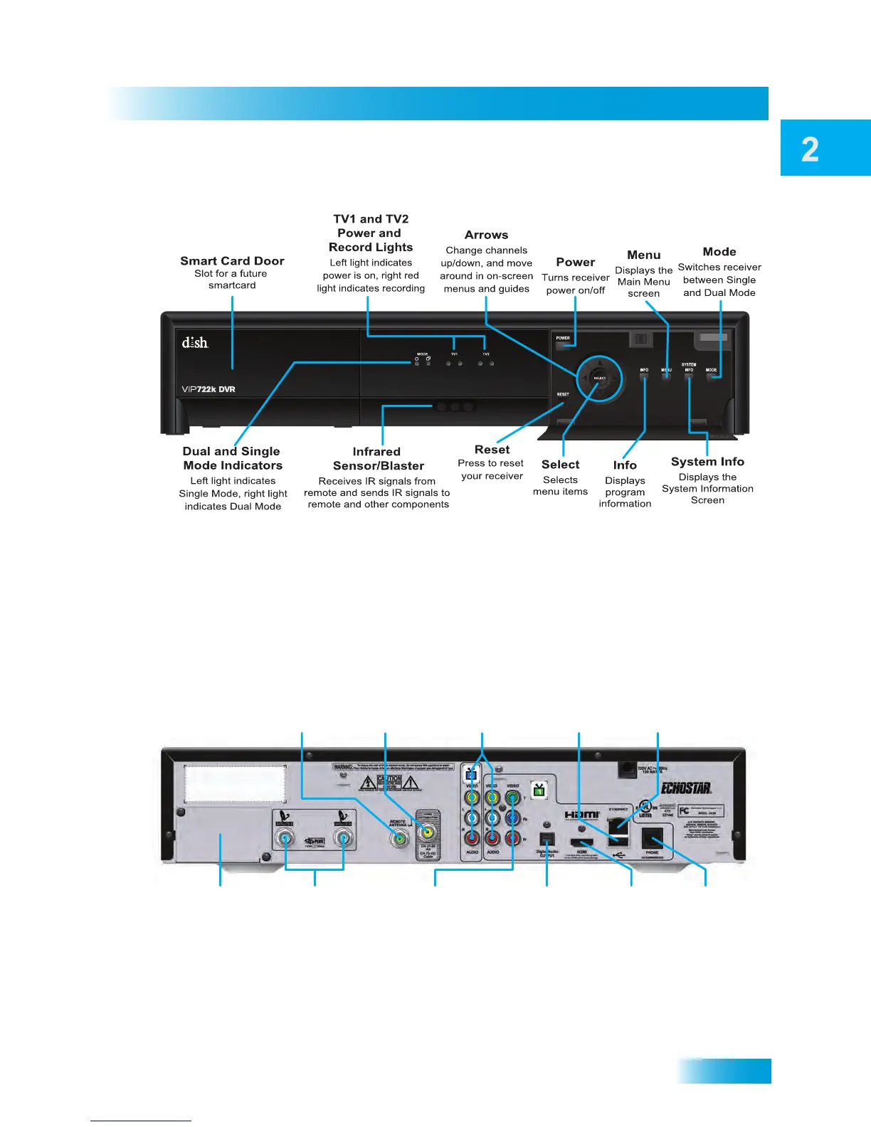 Dish Network Dish ViP722K - Satellite Receiver Front Panel; Satellite Receiver Back Panel