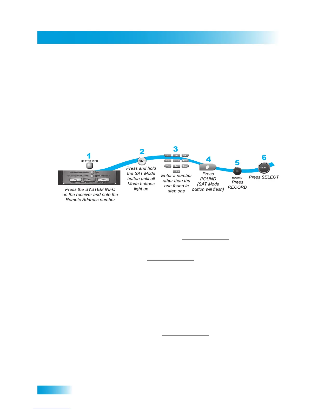 2 Press and hold the SAT button on your remote control for about three seconds, until all of