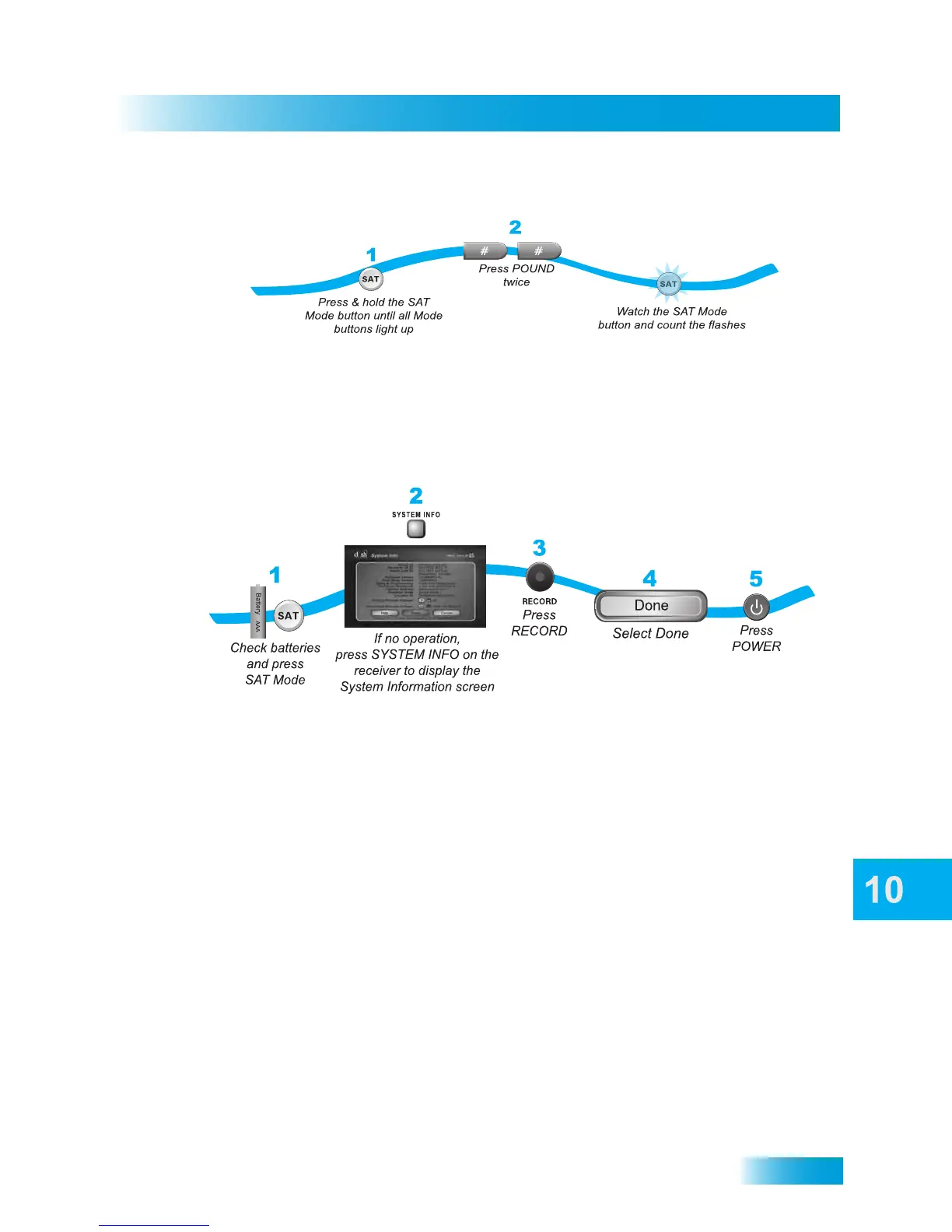 2 Press POUND (#) twice. The SAT mode button will flash the same number of times as the
