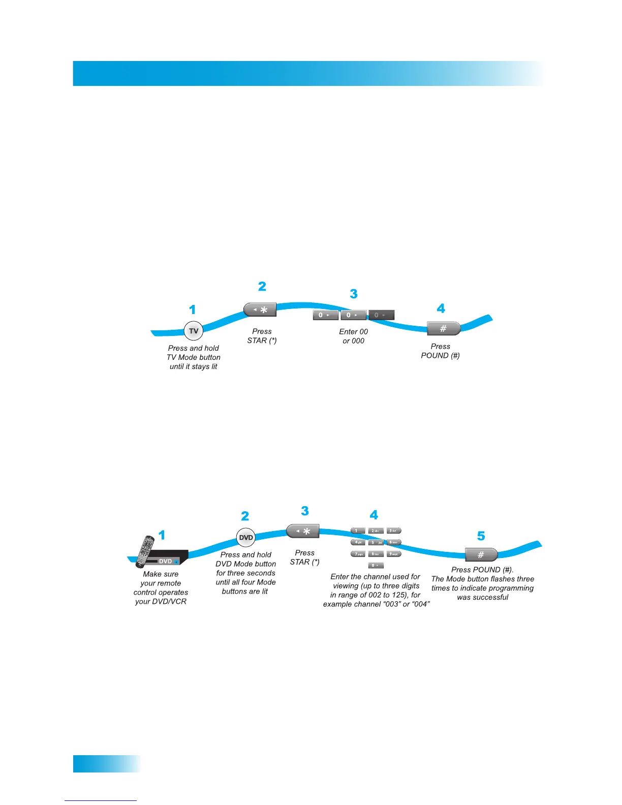 2 Press and hold DVD Mode button for three seconds until all four Mode buttons are lit.