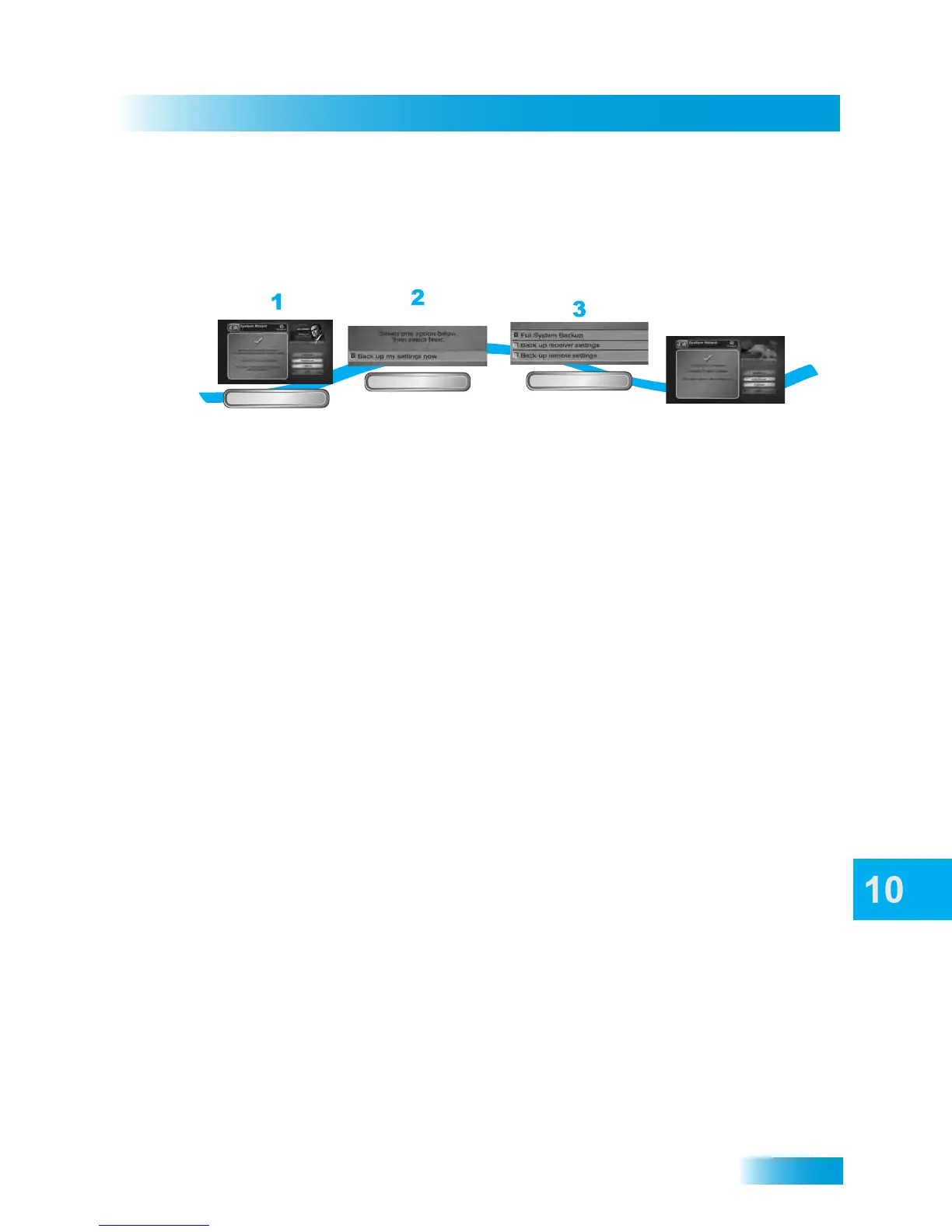 3 Select Full System Backup, Back up receiver settings, or Back up remote settings.