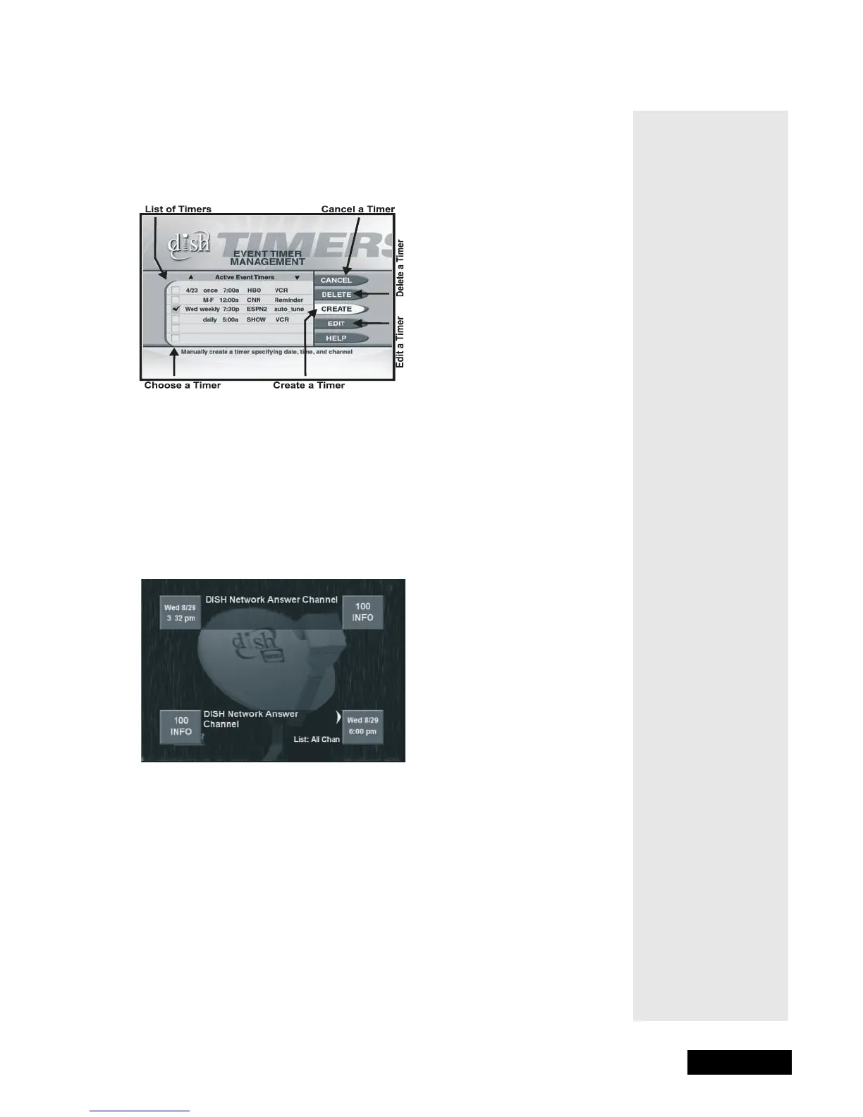 The Timers Menu allows you to set up the receiver to tune in and/or record a