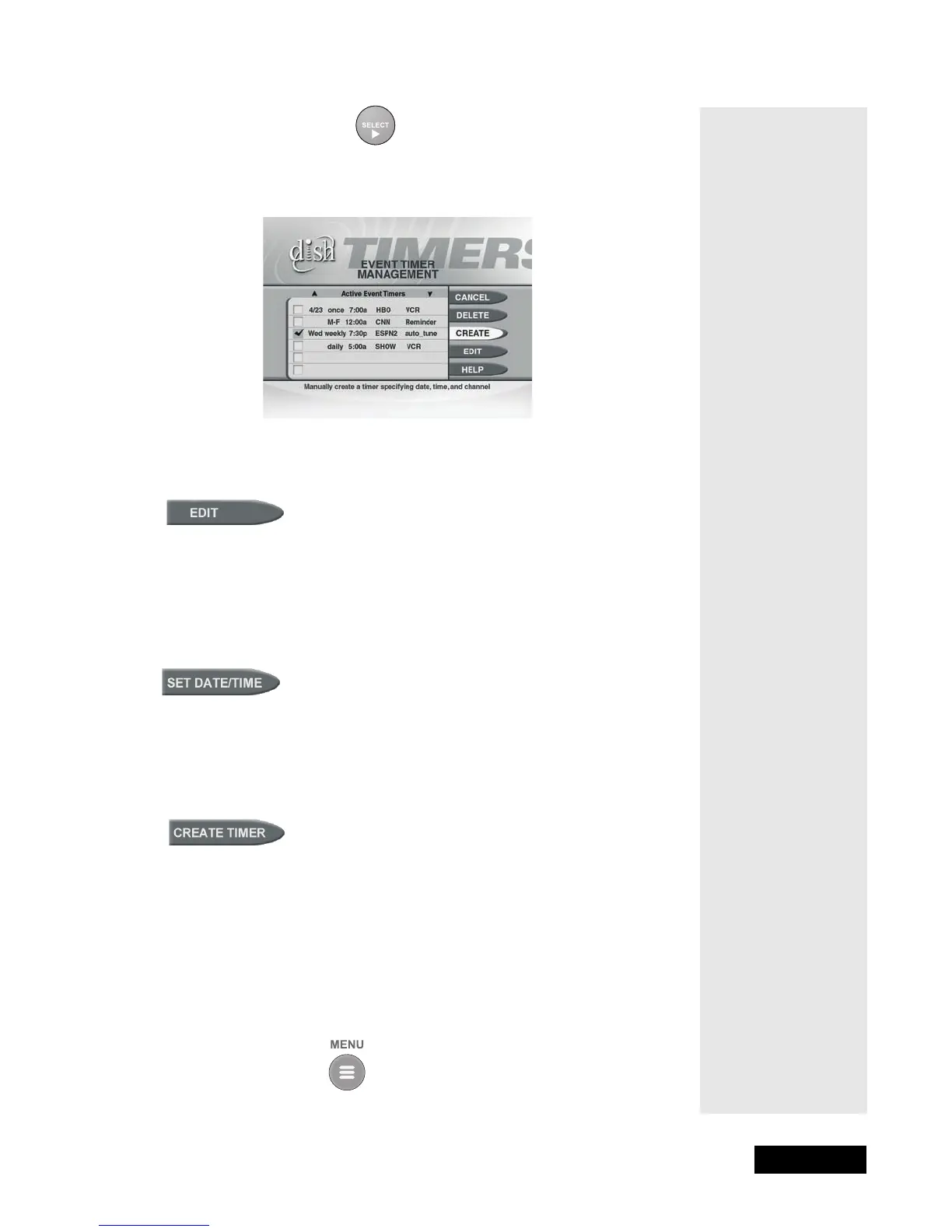 3. The receiver displays the Event Timer Management menu.